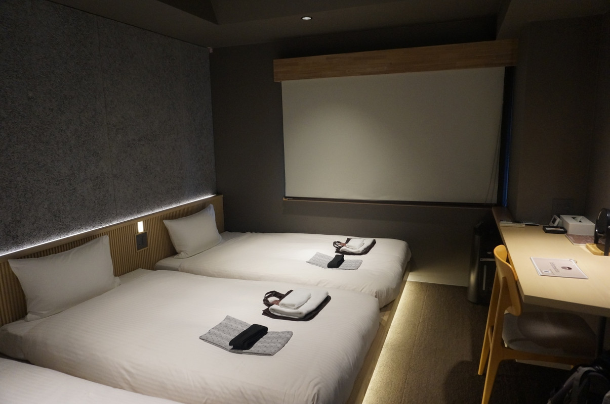 フロントはアロマがたかれていいて、いい香りが漂っています。部屋は狭めですが、寝るだけなら問題ないと思います。靴を脱いで部屋に入るので、くつろげます。マットレスは動かしてくっつけられるので子供が小さい家族連れにもオススメです。温泉は併設のかめ福をを使えます。お肌がスベスベになりました。かめ福の売店は10時には閉まりますが、斜め前にローソンがありとても便利でした。