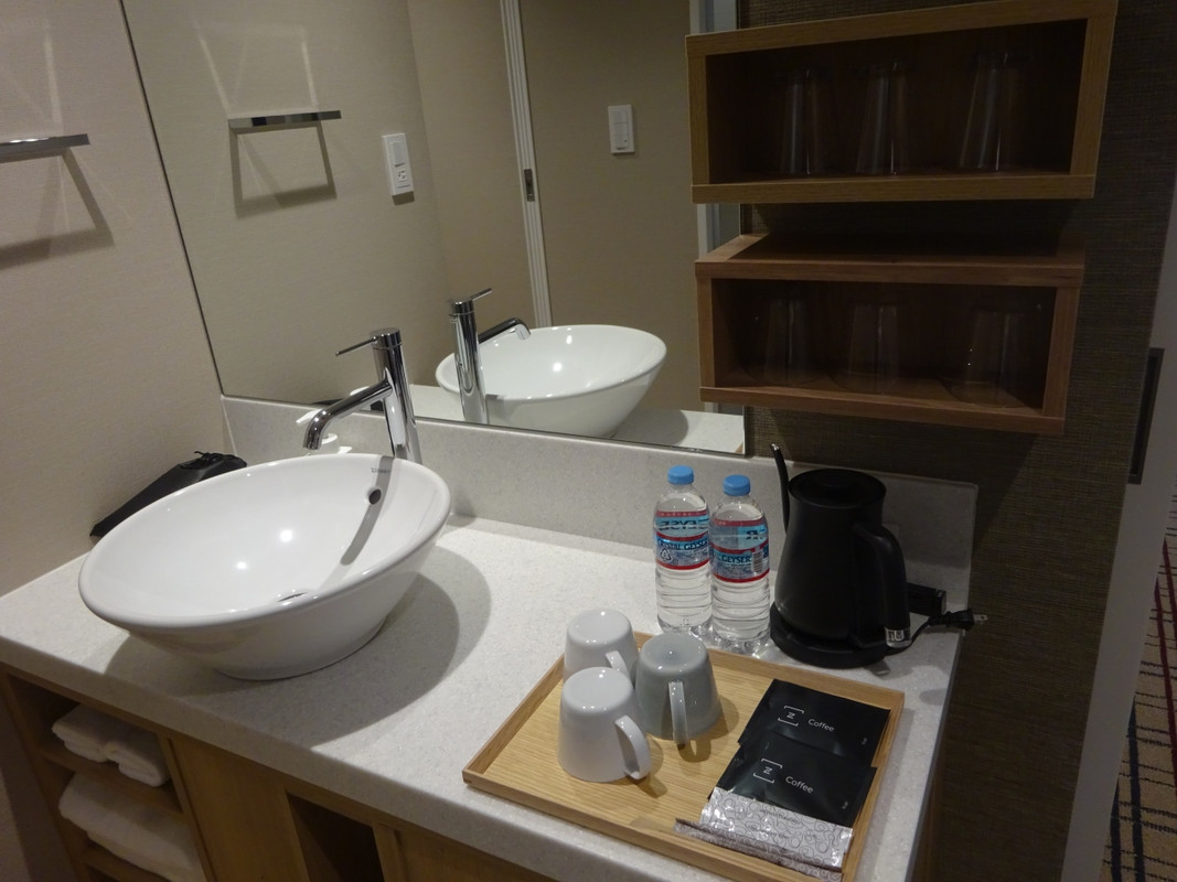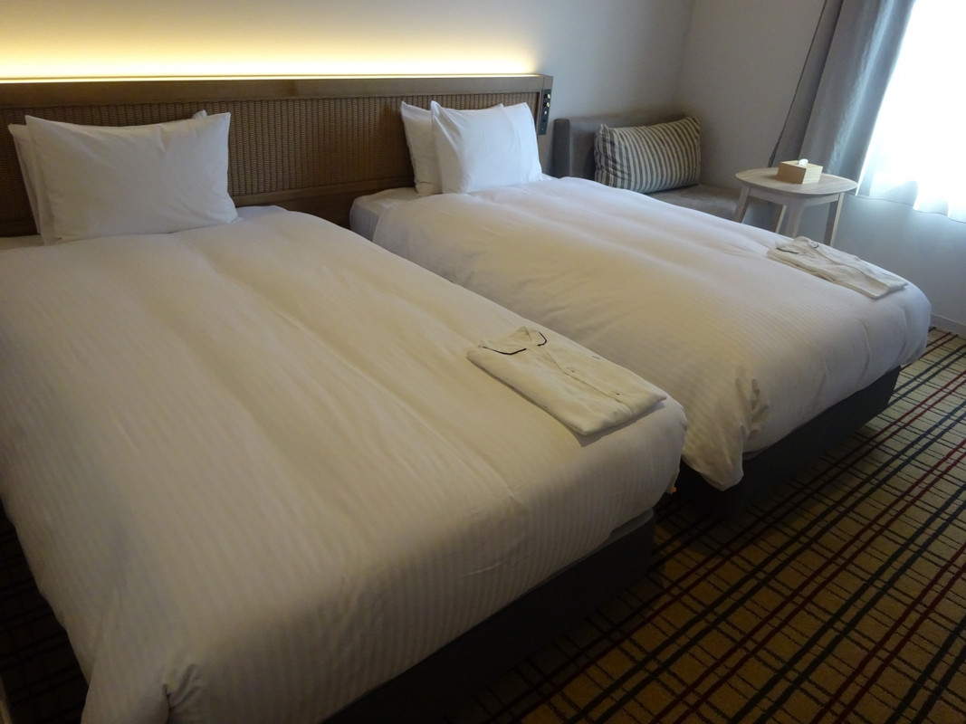 照明も読書灯は無く、左右別々にコントロールできません。ベッドは2つあっても、2人で泊まるには、トランジットの1泊くらいかな?と言ったところです。
