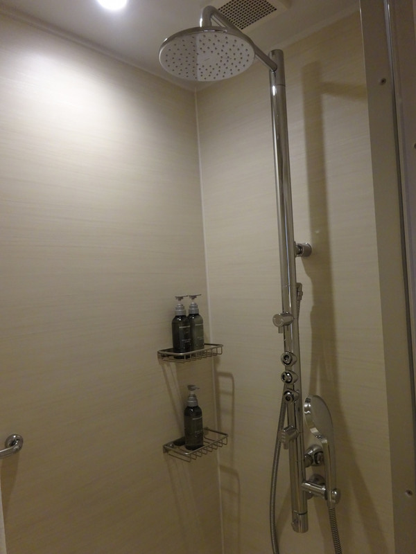 客室はそれ程狭くはないのですが、(私の所だけかも知れませんが、、、)クローゼットも抽斗も棚も無いので、服や下着を毎日スーツケースから出し入れしなくてはならず不便でした。椅子も1人掛けのソファーがひとつきりで、テーブルで飲食するのに、もう1人はベッドに座る状態です。