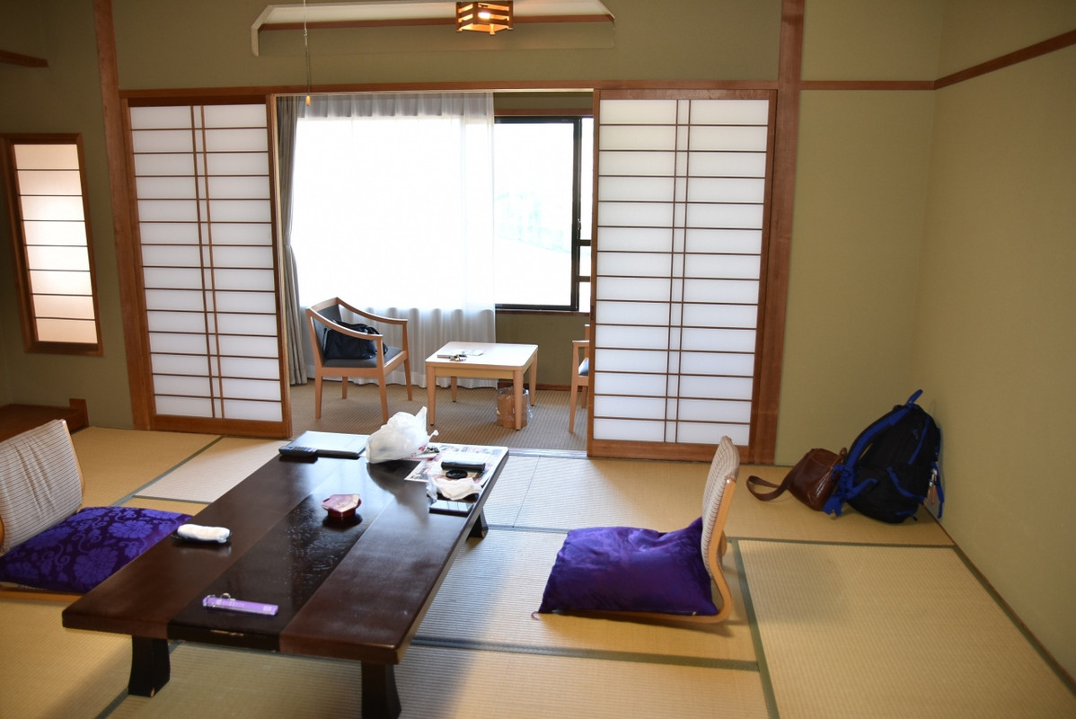外観及び館内は少し古い感じです?清掃、清潔感があり良いですね。和室の部屋は二人では十分な広さが有ります。部屋からの景色はあまり期待出来ません。部屋のバスタブも温泉になっていましたが、やはり大浴場が良いですね。食事は大広間での清流膳です。品数も多く、美味しく、かなり満腹になりました。朝食も同じ場所です。こちらも満腹になります。又夜食ではないですが、お汁粉にうどんが、入った無料のサービスが有りました。宿泊代を考えるとかなり満足で来ました。