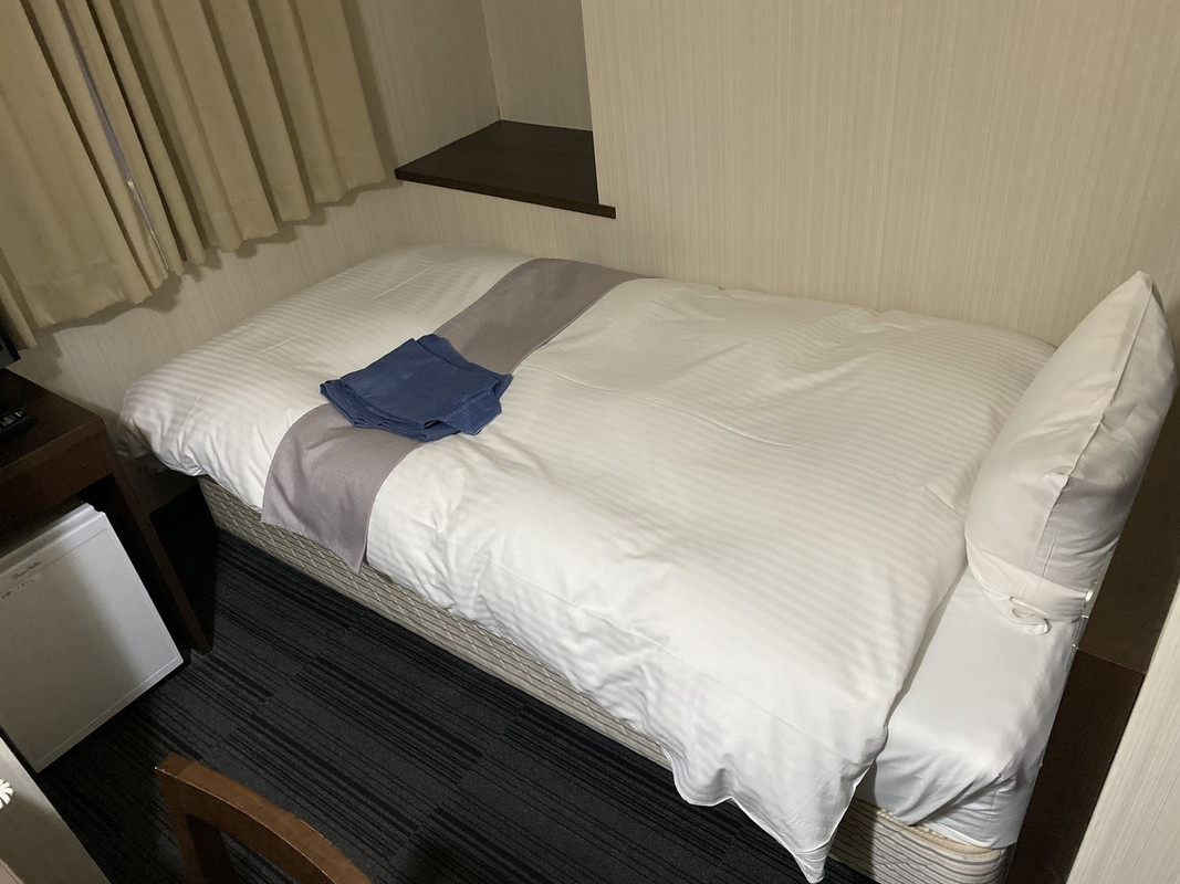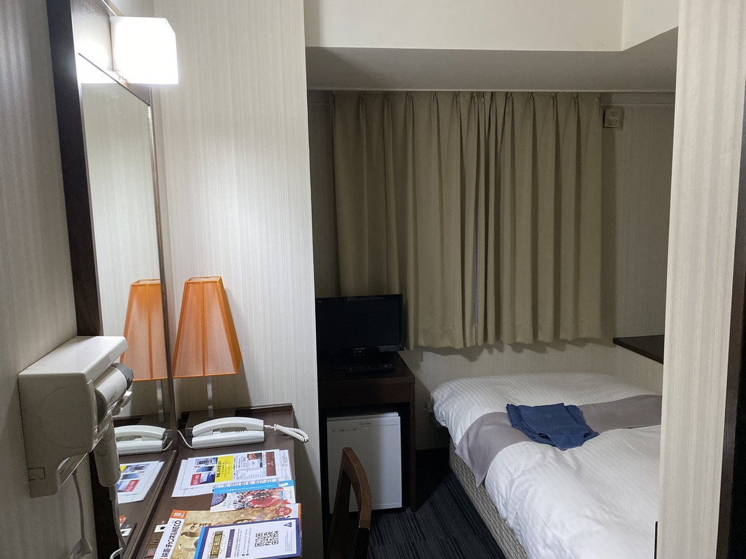 ホテルのお部屋は至ってシンプルな造りですが、部屋がちょっと狭かったもののベッドは少し広めでした。