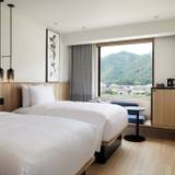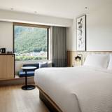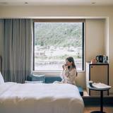 「フェアフィールド・バイ・マリオット・岐阜美濃」は、緑豊かな里山に佇むホテルです。道の駅「美濃にわか茶屋」に隣接し、徒歩圏内には「うだつのあがる町並み」も。ナチュラルで明るい内装が特徴で、窓際のソファコーナーからは美しい里山と川の景色が楽しめます。夕食は付いていませんが、地元の味を堪能できるお店も紹介しもらえるので、安心ですよ。心安らぐ滞在をお楽しみください。