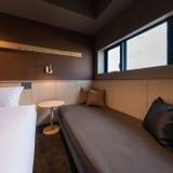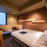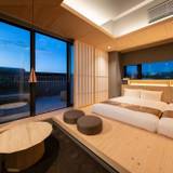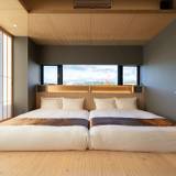 桧のアートワークがやさしいゲストルーム。森に囲まれた和モダンの癒し宿
