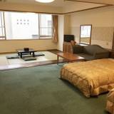 和室で広い。作りが古く畳も変色しています。THE旅館の和室という感じで各スペースが余裕あります。