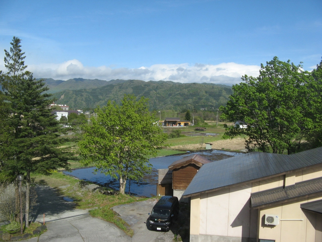 白馬八方温泉の中では収容力の大きな旅館のひとつです。館内のロビーは開放的で北アルプスの山々を眼前に眺めることができました。客室は和室と洋室があります。温泉の大浴場には露天風呂のほかサウナもありました。