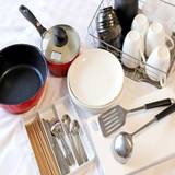 調理器具セットを借りるのは1日500円かかるので、お弁当を買って部屋のレンジでチンするとかのほうがいいのかもしれないけど、せっかくなので自炊してみたくて借りてみた。1 / 1
