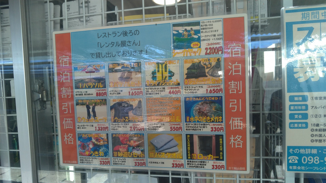 海へ行く間にレンタルショップがあります。宿泊者はかなり安くなります。