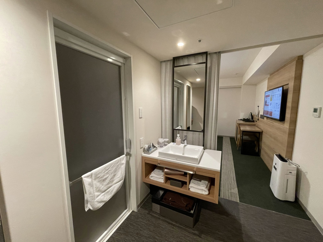 室内は空気清浄機も設置されており、外装、内装、廊下、室内、どこも手入れが行き届いて、お風呂もユニットバスですが普通のビジネスホテルより広く洗い場も付いています。