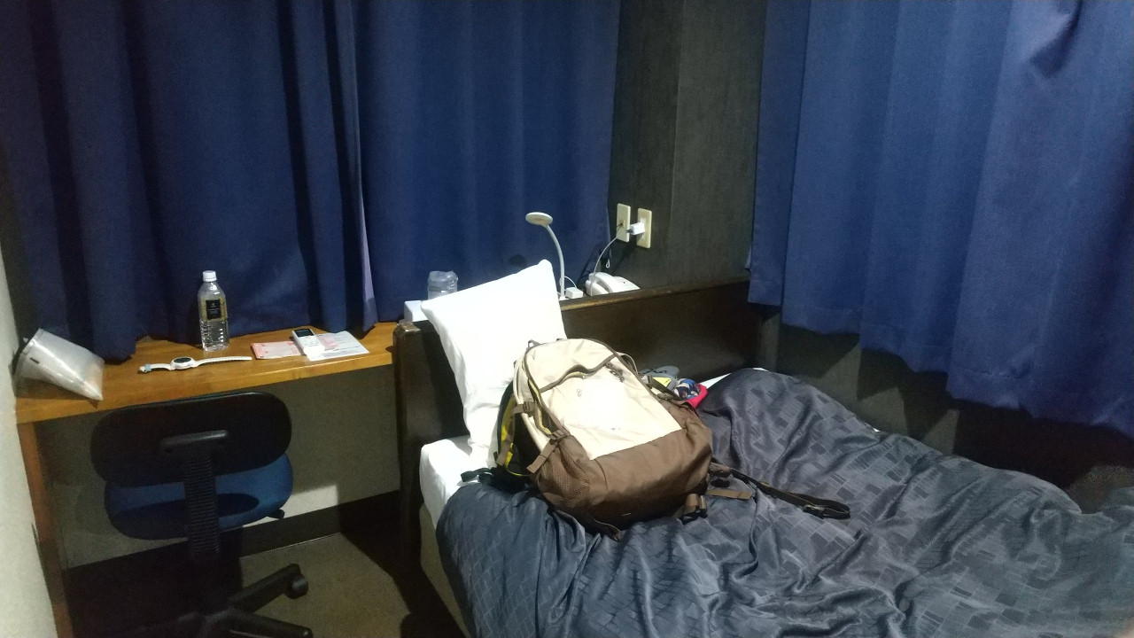 安房港 7時発の高速船に乗るため、宿泊。agodaでバストイレ付シングル7091円。港までは徒歩5分程度。船に乗るには良いが、安房の繁華街までは10分以上歩くようになる。飲みに行かないなら、近くにAコープがあり弁当が買える。建物は古く、階段しかないので、3Fの部屋までダイビング器材をもって上がるのが大変だった。