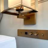 銀座7丁目に4月に開業したばかりのホテル。他のグランベルホテルも印象が良かったので楽しみにしていました。クィーンのコーナーの部屋に宿泊。グランベルの中でもワンランクアップという事で、大人の落ち着ける部屋の雰囲気が印象的でした。濃いブラウン系のインテイリアと障子を思わせるようなブラインド、ゆったりした気分で滞在できます。サウナもあり仕事や観光で疲れた体もゆっくりと休められます。