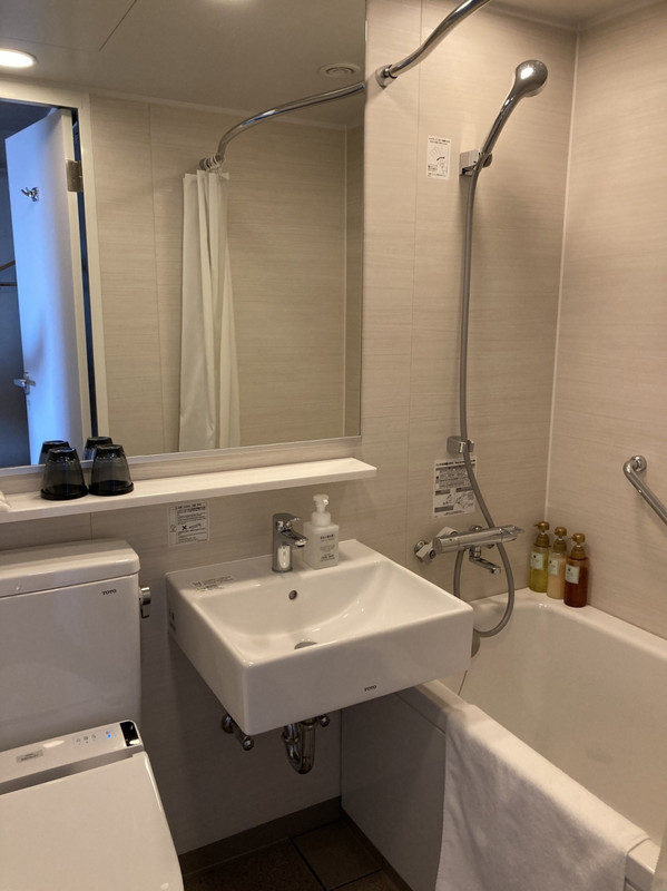 乗り継ぎに1泊しました。快適過ぎて延泊しました。駅と百貨店の隣ビルでフロントとラウンジ、朝食会場は2F、大浴場は3Fです。空港バス到着バス停の反対側ですが空港行きバス停と電車乗り場はまん前です。部屋から松山城が望めます。机の真上視線の高さに小さい棚があったり使い勝手よし。大浴場は温泉でないようですがサウナとも清潔です。郷土料理、ミカンジュース3種、日本酒2種もあり大変満足しました。お土産は松山城ロープウェイ乗り場手前の物産館と松山空港で調達しました。