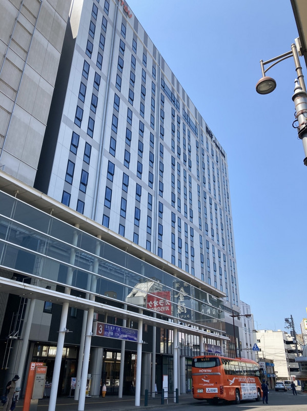 松山市駅の並びにホテル入口があります。松山空港へのリムジンバス乗り場がホテルの目の前にあって、とっても便利。松山城や道後温泉への観光にも便利な場所です。お部屋もとってもキレイ。朝食は混雑していましたが種類多めで名物も食べられて美味しかったです。ウェルカムドリンクと一緒にソフトクリームがあったのが贅沢でした。