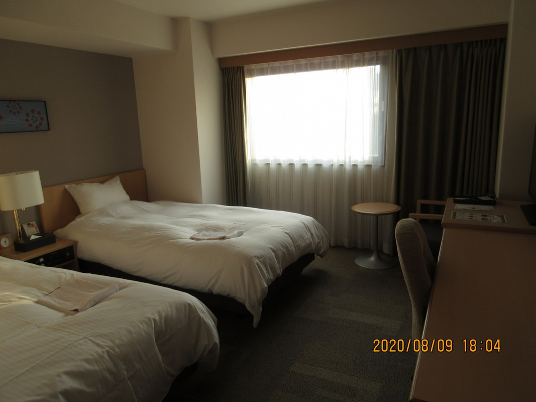 浜松駅から徒歩12~3分と少し離れているが、客室はビジネスホテルとしてはツインで25㎡とまずまずの広さであった。朝食はコロナ禍により1階のカフェでセットメニュー6種から選ぶ方式であった、餃子とミニうな丼がついたやらまいか定食は美味しかった。2階フロント近くの精算機の横に無料の新聞が置いてあった。
