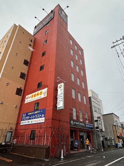 函館の屋台村、大門横丁に近いホテルです。外観はかなり古い感じがします。以前は、ホテルではないような建物です。最初は、入るのに少し抵抗すらありました。中も、ホテルらしからぬ感じです。しかし、スタッフの方が、とても親切なので、不安はなくなりました。部屋もきれいで、新しい感じがしました。また、ロビーには、焼酎なのでのアルコールや、お菓子、カップ麺が無料でいただけました。宿泊する人たちが集える場所で、とても親しみやすい雰囲気のホテルでした。