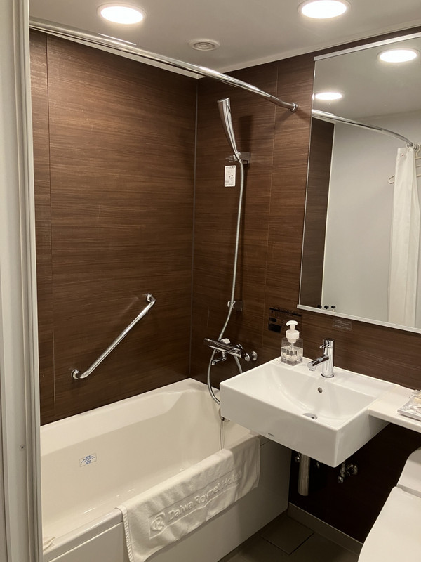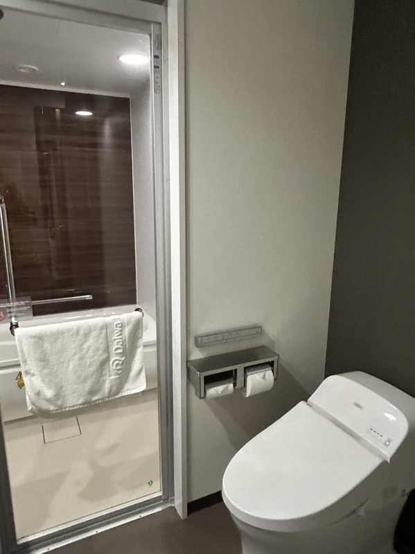 徳島駅の目の前、1階はコンビニ、裏には契約駐車場(1泊1100円、7時~22時)、近くには居酒屋などがいろいろあってすごく便利。広いベッドのツインルームで、バスタブも洗面所も広く、トイレが別にあるのもゆったりできて良かった。