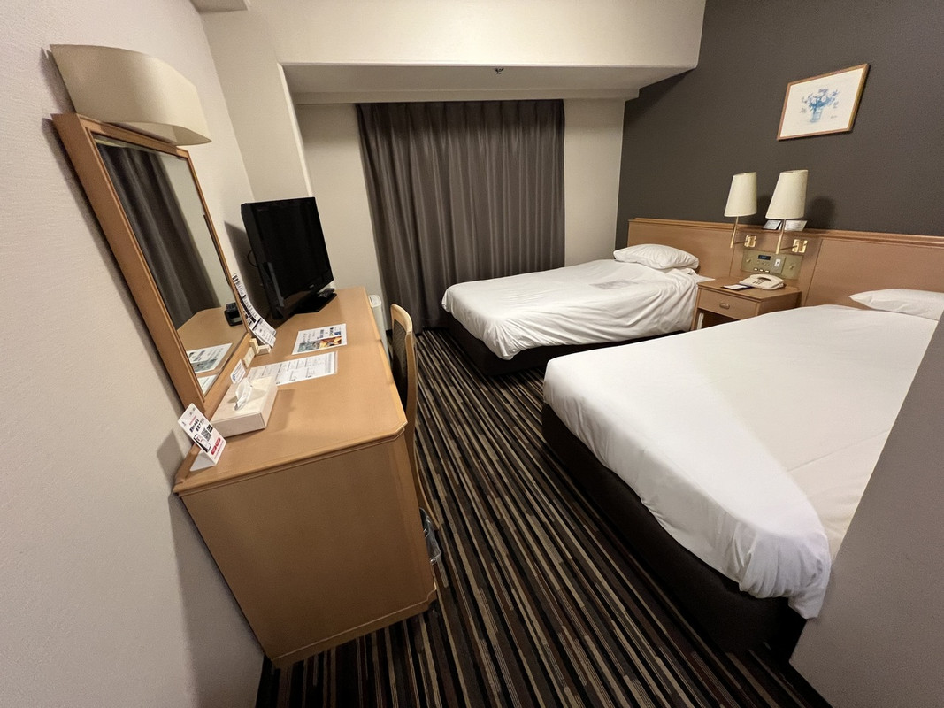 徳島の駅からちかくて、空港からバスで駅までいってそこから歩いてアクセス。スマイルマークがホテルの外に看板としてでているのでそれが目印になる。ホテルはちょっと年季はいっているなというのは感じます。仕事帰りにそのまま向かったので夜チェックインして、朝早くから移動する予定だったので、7時ごろにはチェックアウトしたので、ささっと利用するには十分な設備