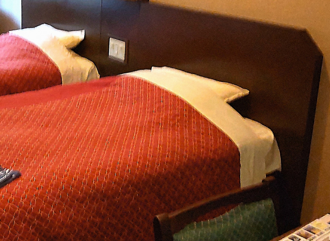 セミダブルのお部屋、この狭さは、ちょっとありえません…。
