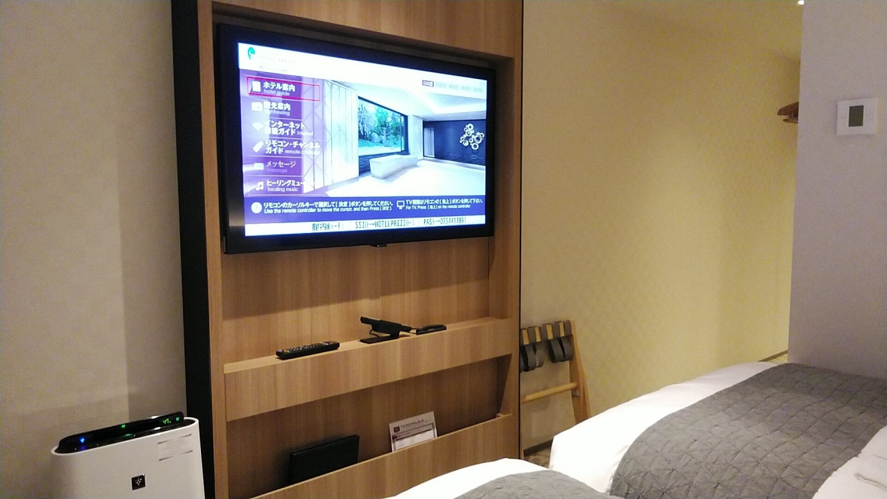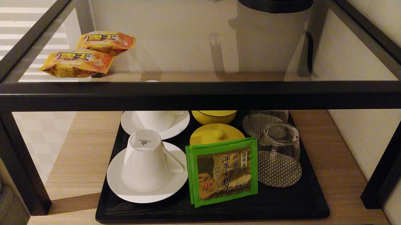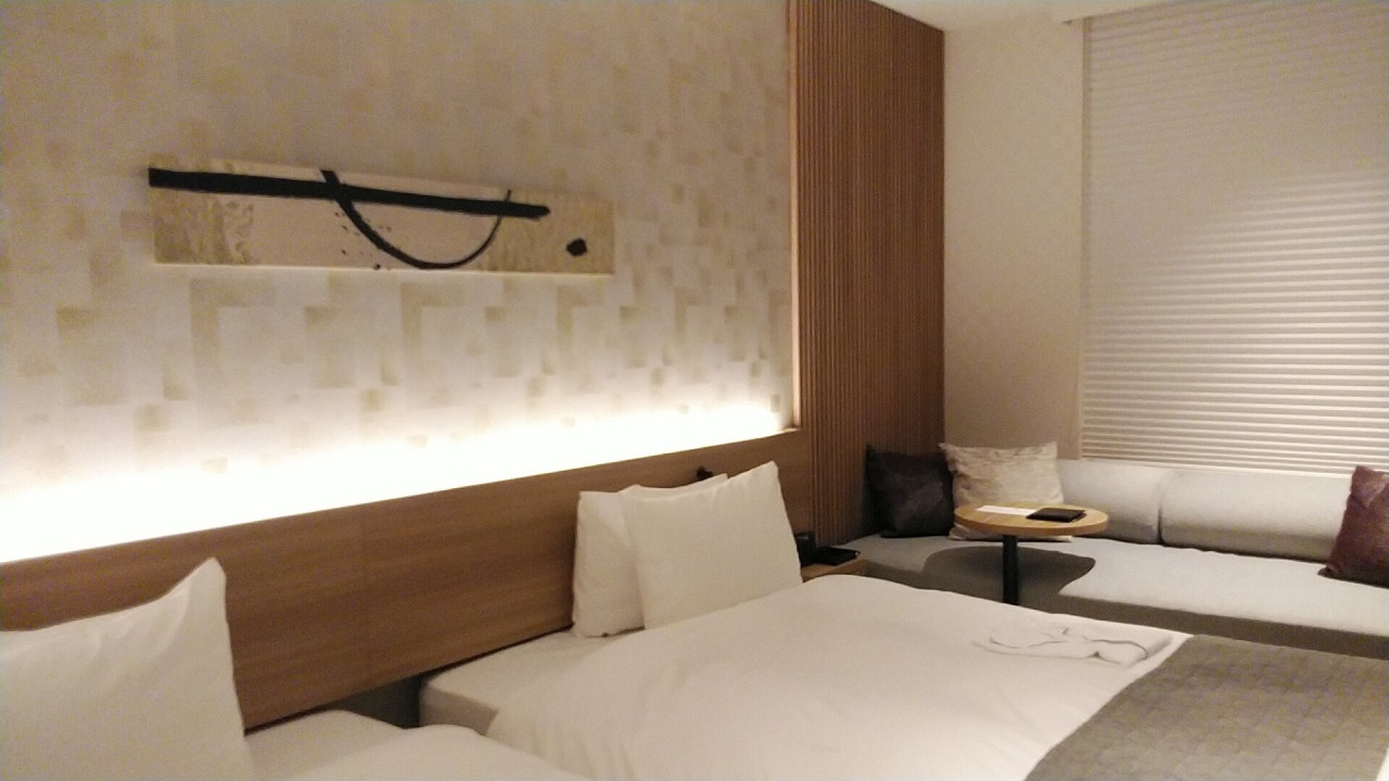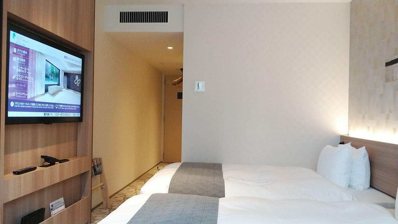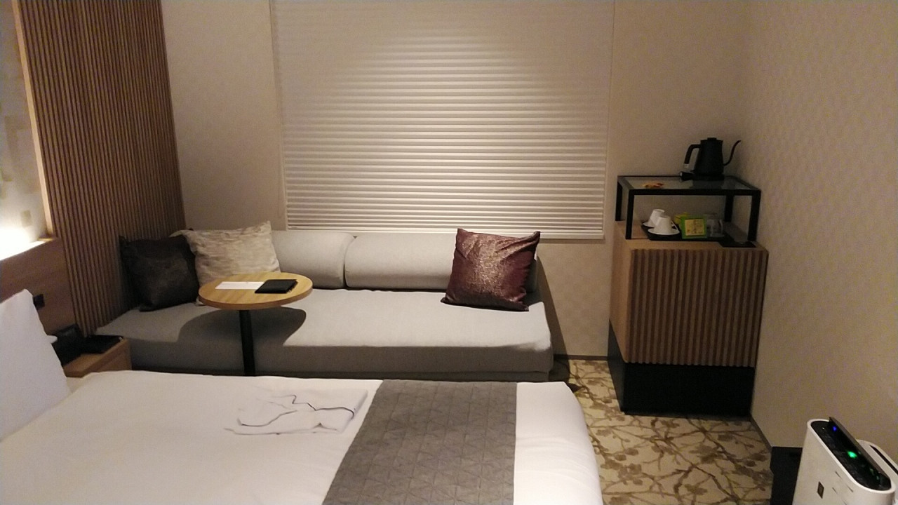 1周年記念プランでかなりリーズナブルでスーペリアツインルームを友達と別々に予約しました。ホテルは5階建てで京都風な外観で内装も落ち着いていました。部屋は5階で眺望は抜けてましたが、ビルも多くガラスも上部が透明のすりガラスでした。部屋は120cmのシモンズのベッドに加湿空気清浄機があり、お風呂は独立で良かったです。部屋は静岡の企業らしく富士山のミネラルウォーターに静岡茶、歯ブラシのみでフロント横でアメニティをとります。入浴剤もあり良かったです。大通りから入っているので静かで良かったです。