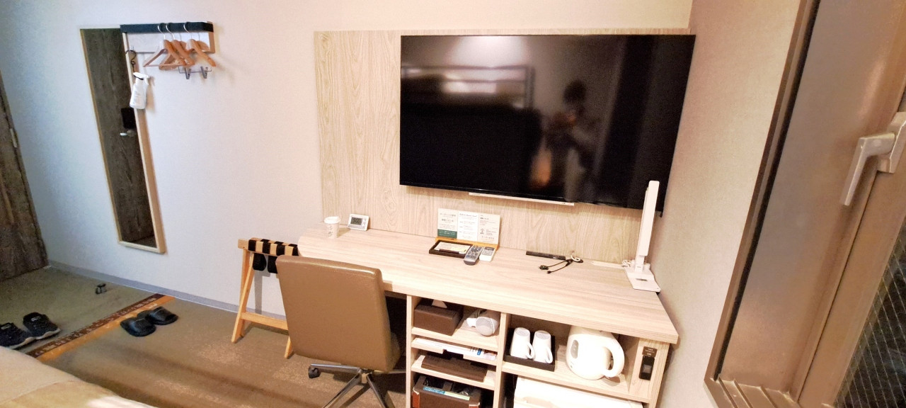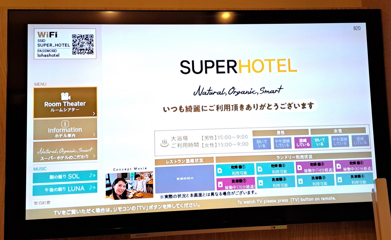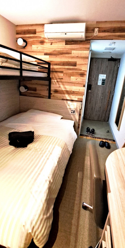 スーパーホテルは他の所でも何度か利用していますが、ここでは二段ベッドの上はベッドメイキングされて無く天井に頭がつきそうなところでセットするのは大変でした。
