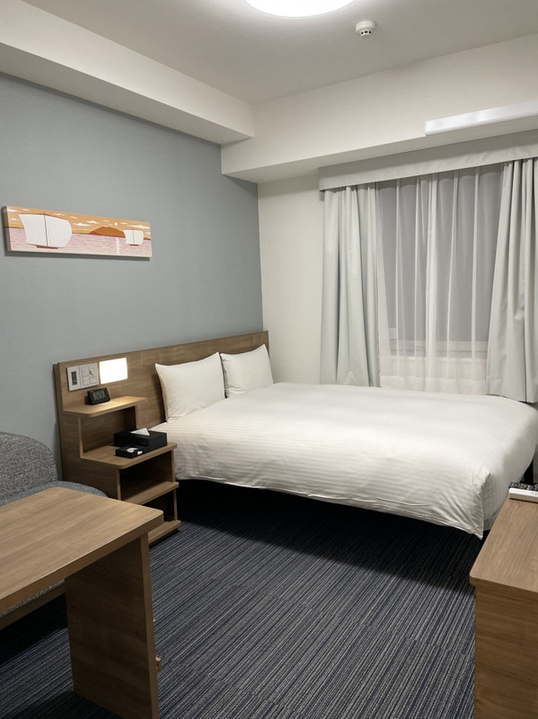 部屋も広めでゆとりがあります。ベッドも寝やすいと思いました。強いて申せば,カーテンがベッドの上に少し干渉しましたが,広いので実用上はほとんど問題ありません。