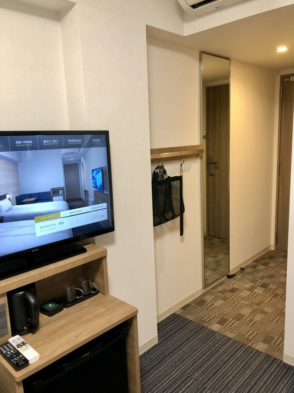 チェックインを済ませ…パジャマ、スリッパ、髭剃り、歯ブラシをピックアップして部屋に入る