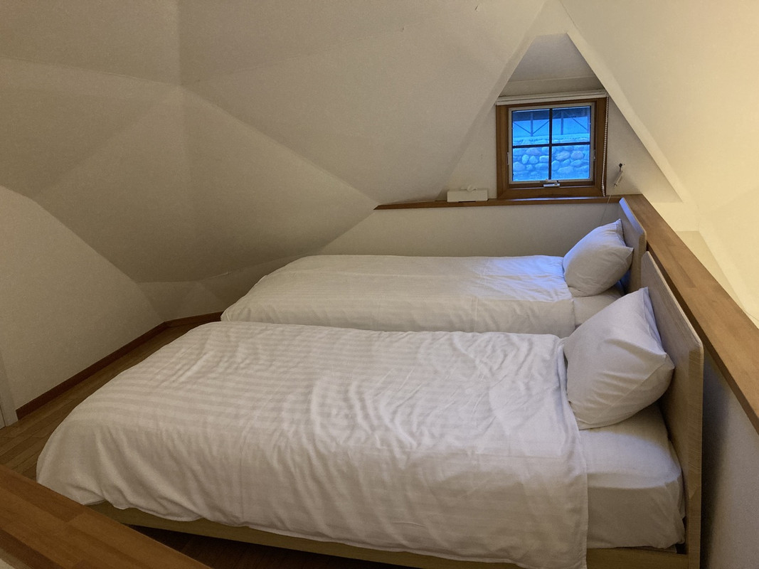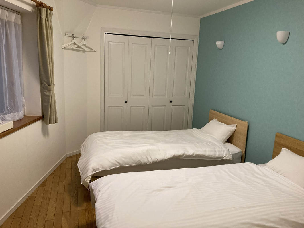 古い建物をリノベした貸別荘です。シングルベッドが5台あり、5人で宿泊できます。