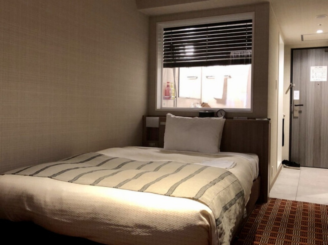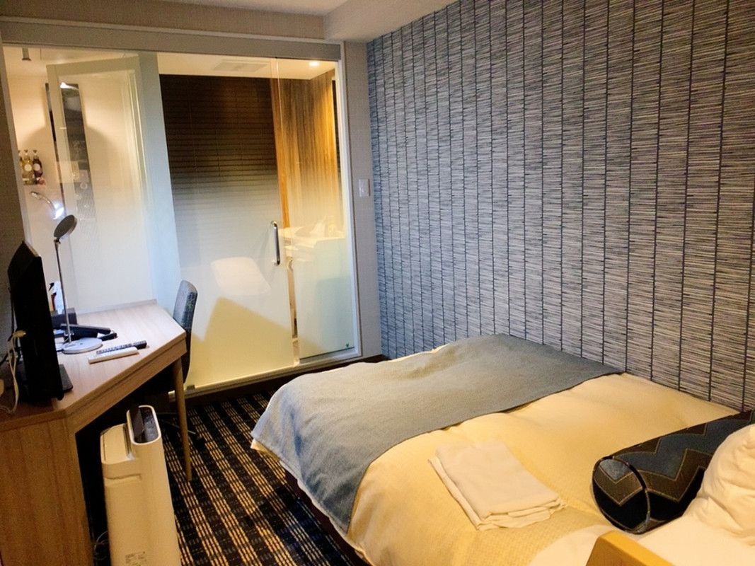 お部屋は、シングルルームではありましたが、快適な広さでした。 バスタブがmustな方にはオススメ出来ませんが、私はバスタブ無しのシャワーブースの方がむしろ広く使えて好きだったりするので、こちらのホテルはちょうど良かったです。 バスルームが窓側にあり、トイレにはブラインドが設置されてはいますが外(繁華街)は見える感じでした。