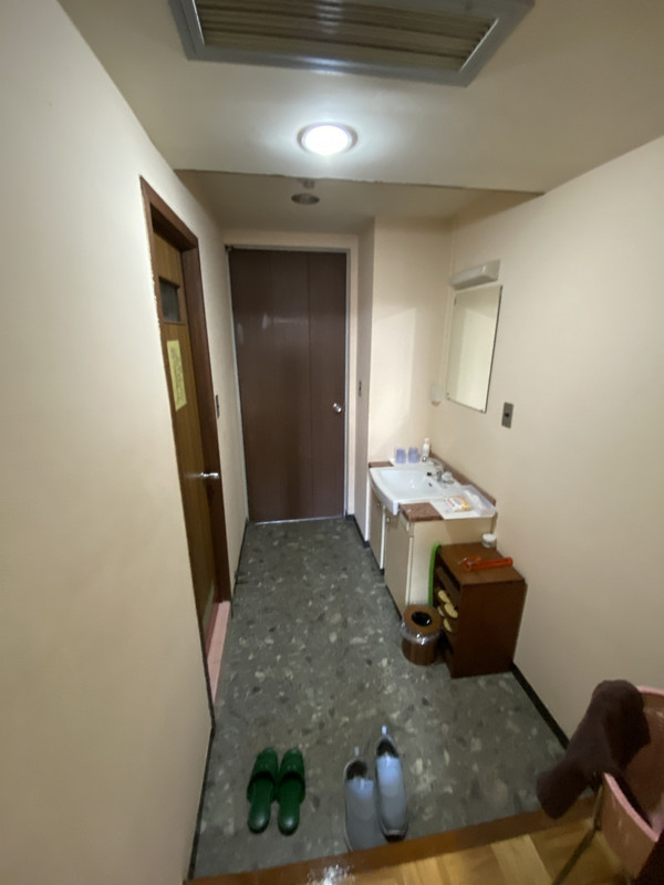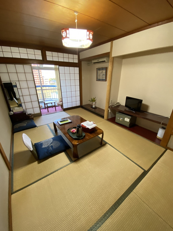 安いし大浴場もあるようなのでネットで予約するとすぐに電話が入って男性の大浴場が故障中なので使えない、ただしの大浴場を時間分けて使えるという連絡があった。安いのでまあいいかと思い受諾した。場所は繁華街のあるとこから川を越えたとこになり歩くと15分くらいかかる。ラブホテルに囲まれて昔の観光バスが乗り入れるツアー客がくる観光旅館風。中もそのままだが閑散期だったせいか電気もつけず真っ暗でフロントにも誰もいない。部屋は当然和室でめちゃ広いが昭和で時間が止まっている感じ。こういう雰囲気が好きな人には受けると思う。