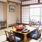 旅館の朝食と言った感じで中居さんがご飯とかよそってくれます。