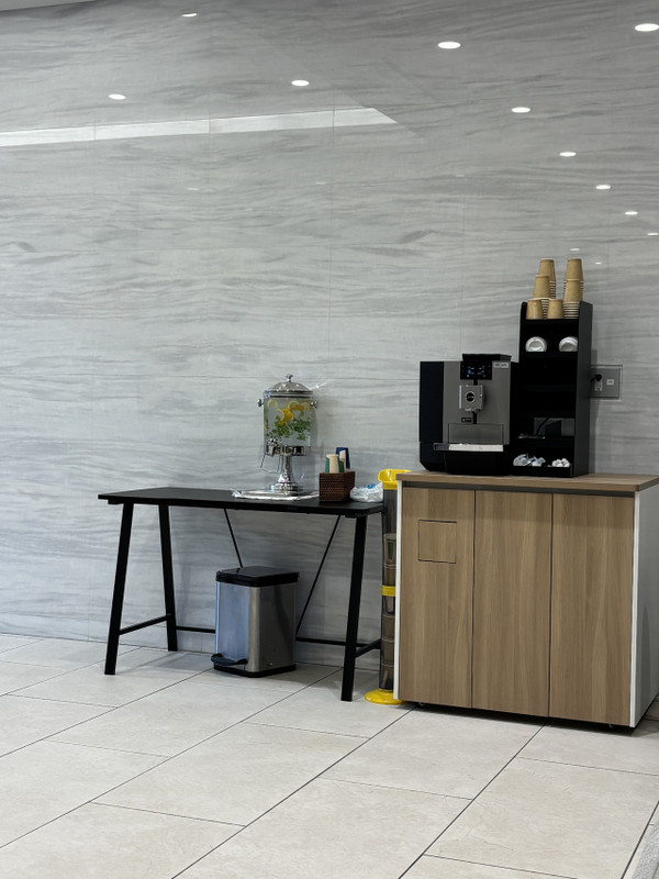 ロビーが明るく、無料のお水とコーヒーが置いてあるのが嬉しい。