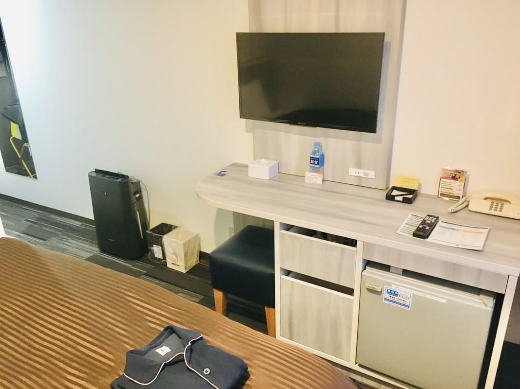 デスクは小さめですが、テレビが壁掛け式だったので圧迫感も無く使えました。