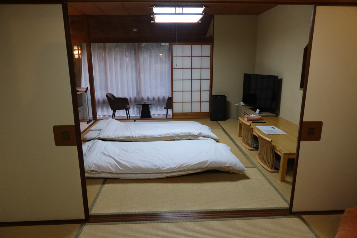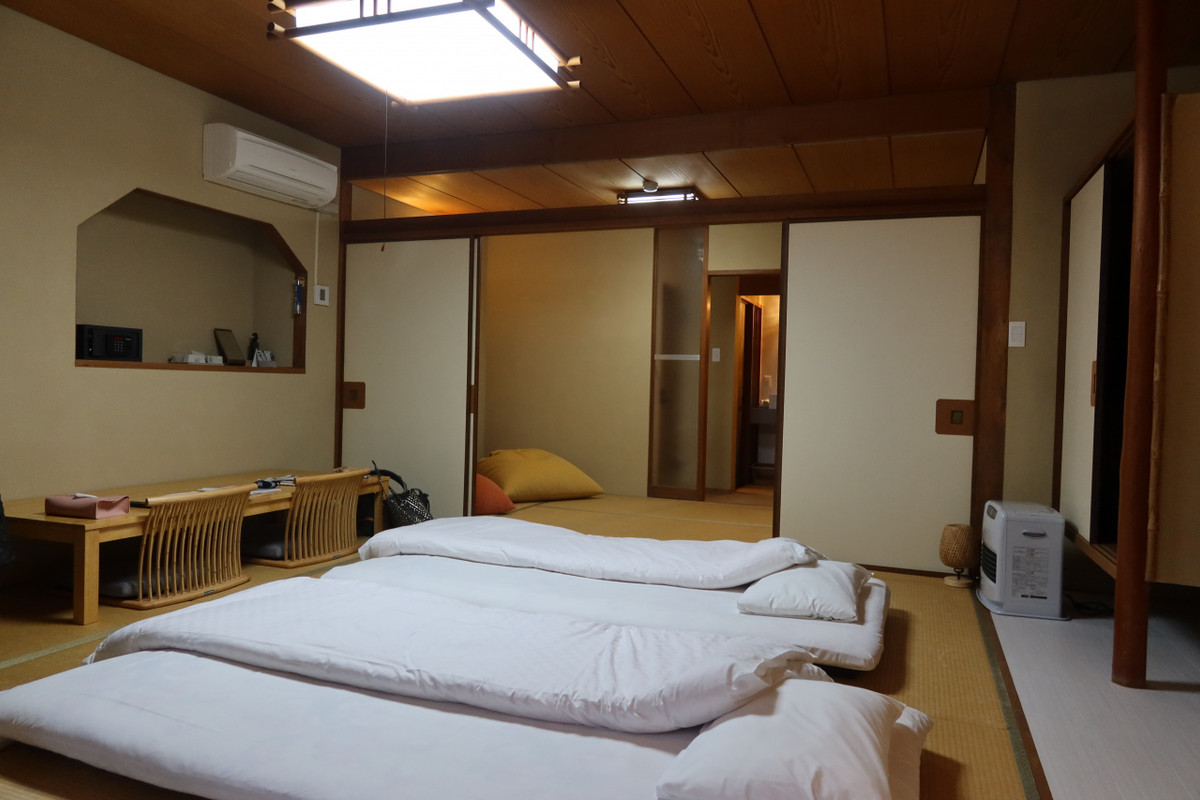 9組/日に限定された宿ですが、訪れてみると9部屋以上ありました。今回宿泊した部屋は中庭に面した111号室。縁側と和室二間の部屋で今回は素泊まりでの利用。部屋にはバス、トイレもあり、部屋風呂も温泉が供給されてます。一見部屋はリノベされて綺麗なのですが、所々古い所が目立ち、部屋もちょっとかび臭い感じがしました。
