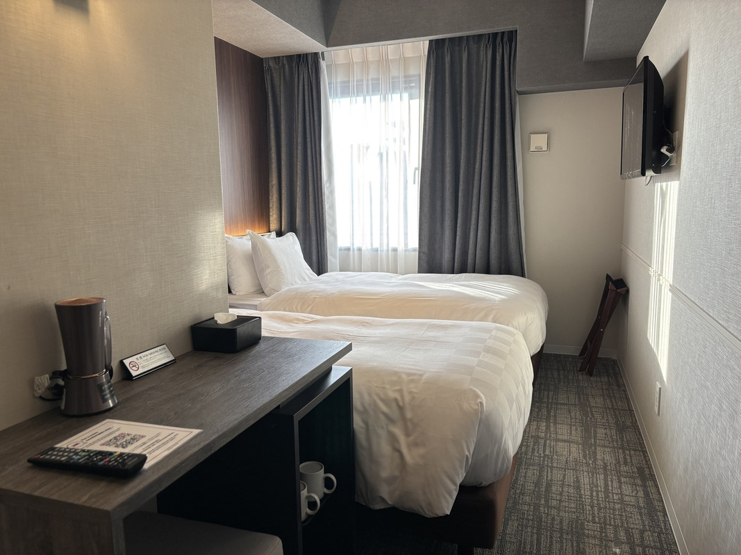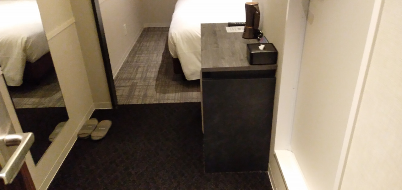 部屋は余り広くなく小さなビジネスデスクが備わっているのみ。バスタブはありません。