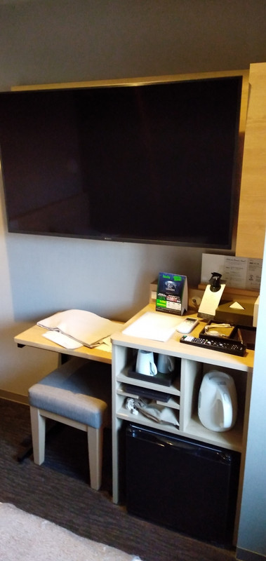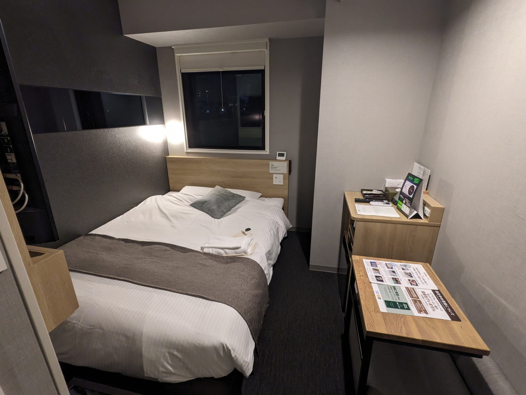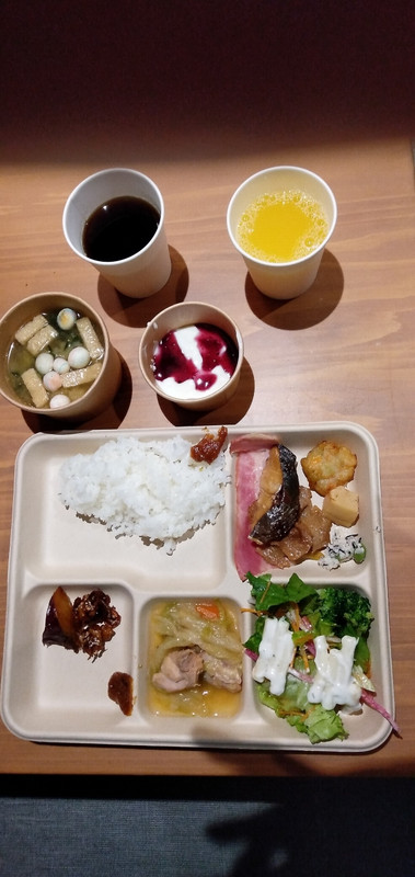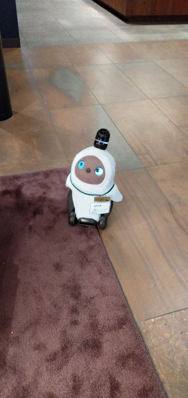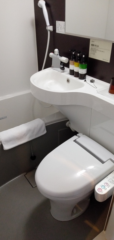 お部屋は広くは無いですが機能的です。暗証番号での施錠・解錠です。サウナは無いものの、夜通し入浴可な大浴場がウレシイ。朝食は地場産品をフューチャリングしたビュッフェでエコ意識の使い捨て食器でした。フロントにラボットがうろついてて可愛い。