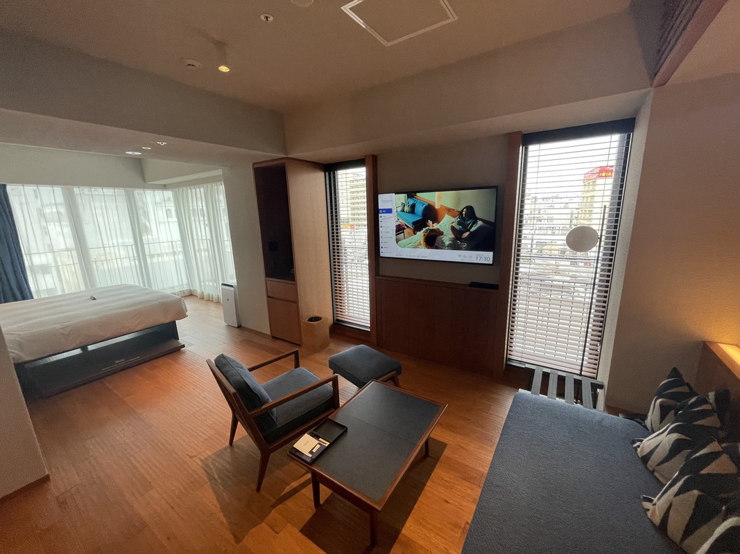 ホテルについては、部屋数は全88室。お部屋の広さは全室45㎡以上あります。宿泊者全員無料で利用できるラウンジ(アルコールは缶ビール、酎ハイ、スパークリングワインあり)やジム、屋上プールにサウナなど充実の館内施設です。