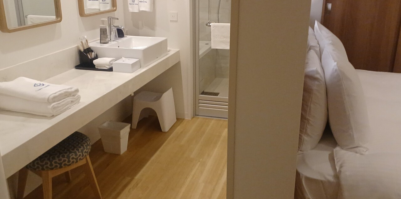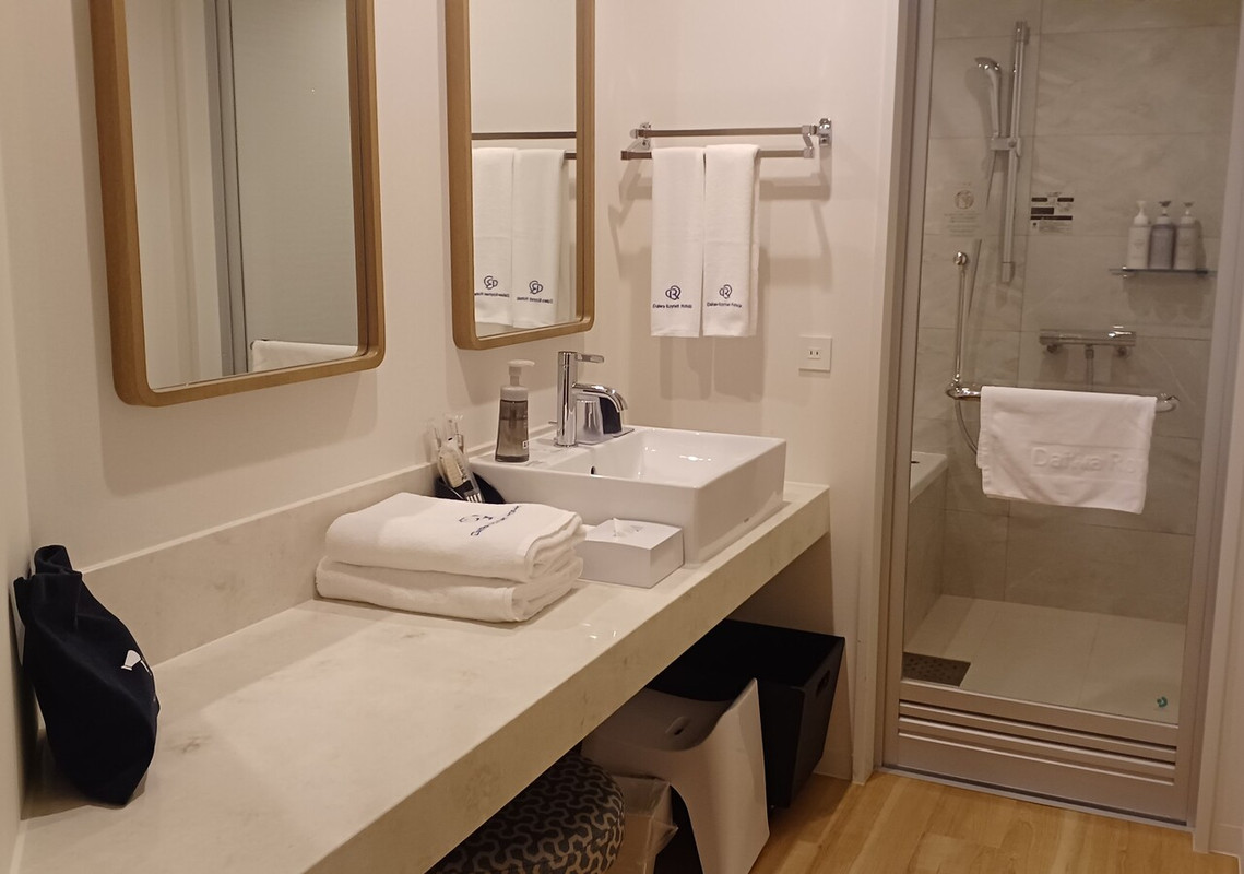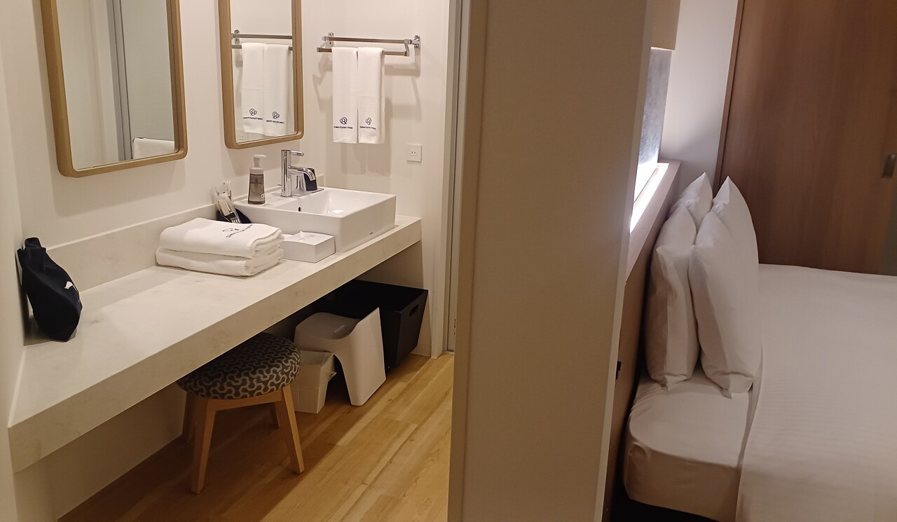 3ヶ月ぶりに宿泊。今回の部屋は入ってすぐ右手に単独のお手洗い。手洗い場とタオルも設置されていた。が、洗面&バスルームは部屋(ベッド)の奥のエリアを曲がった先にあった。お手洗いと洗面&バスルームが360℃離れていて使い勝手のよくない部屋だった。それ以外は文句なし。シャワーヘッドはリファの4段階。朝食も美味しい。1階にチェックアウト後も利用出来るバゲージポートあり。