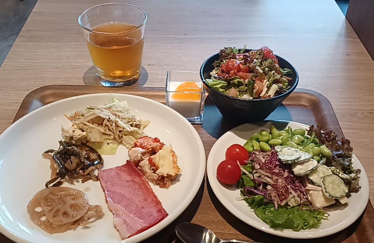 約1年ぶりに宿泊。チェックイン時にアップグレードしていただいたようで嬉しかったが、1年前に泊まった、お手洗いと洗面所が360℃離れている使い勝手のよくない部屋だった。508号室。アメニティはフロント階から頂ける。フロントにご自由にどうぞとカゴに入っている塩飴がお気に入りでサンエーで購入。歯ブラシ、ミネラルウォーターは部屋にあった。朝食はタコライス、沖縄そば、にんじんしりしりあり。