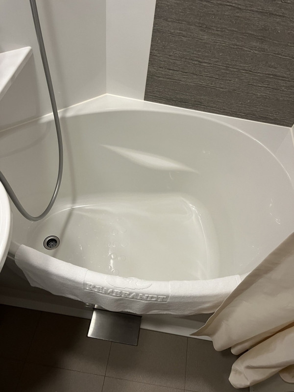 寝るだけなら充分であるが寛ぐには狭く、バスタブも新しいから見栄えが良いものの、圧迫感がある。