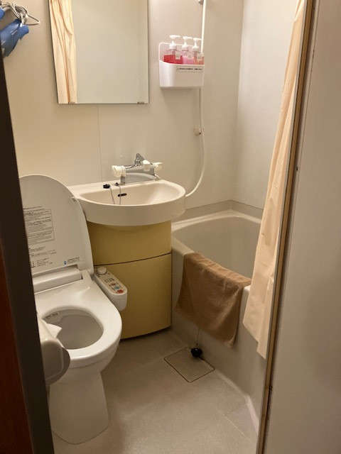 お部屋もバスルームも狭いめ、アメニティ少な目、フロントさんも普通です。