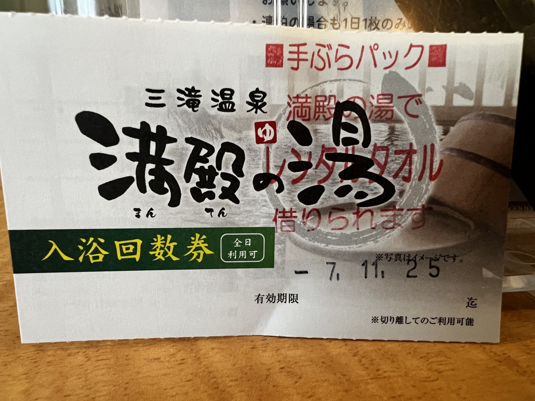 2つ目はスーパー銭湯満殿の湯の無料券がいただけます。