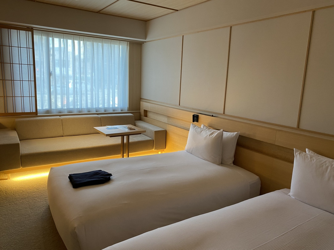 春の京都旅行の際に宿泊。新しいホテルで綺麗でしたが、入り口が階段を下りたところにあり、わかり辛かった。道路から下の位置にフロントがあり、明かりは入ってくるものの少し狭い感じがした。部屋は和風の雰囲気が漂うお部屋で広く、バス、トイレ、洗面台が独立していて使いやすかった。洗面台が妙に長くちょっと違和感。大きな道路に面していても、部屋内は静か。大浴場があるらしいが使用しなかった。朝食の案内に対応する人がいなくて困った。新しいホテルなのでこれからに期待したい。