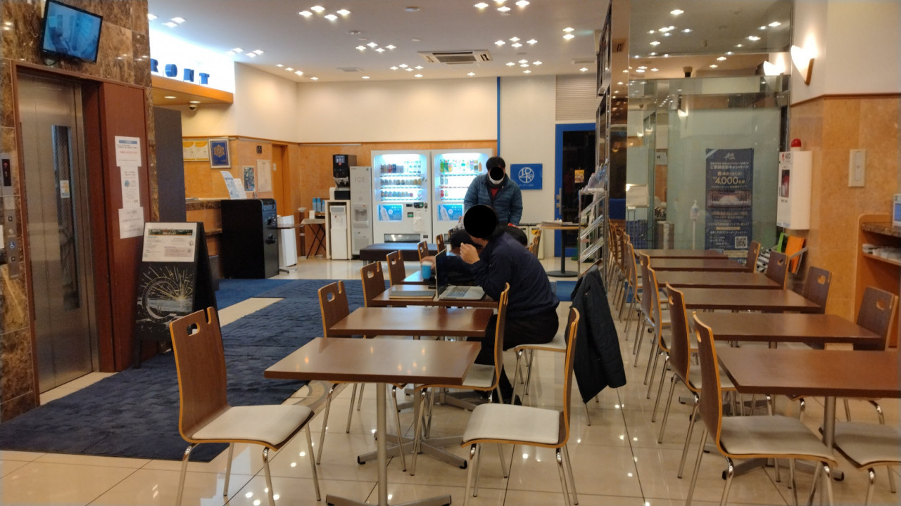 ホテルの周辺は飲食店がいくつかありますが、深夜帯は勿論夜間は閉まっている店が多いです。そのため深夜帯の食事はコンビニ等で調達する必要がありますが、周辺にコンビニが無く、最も近くて徒歩で5分程。悪天候時は食料を調達してからチェックインした方がいいかもしれません。