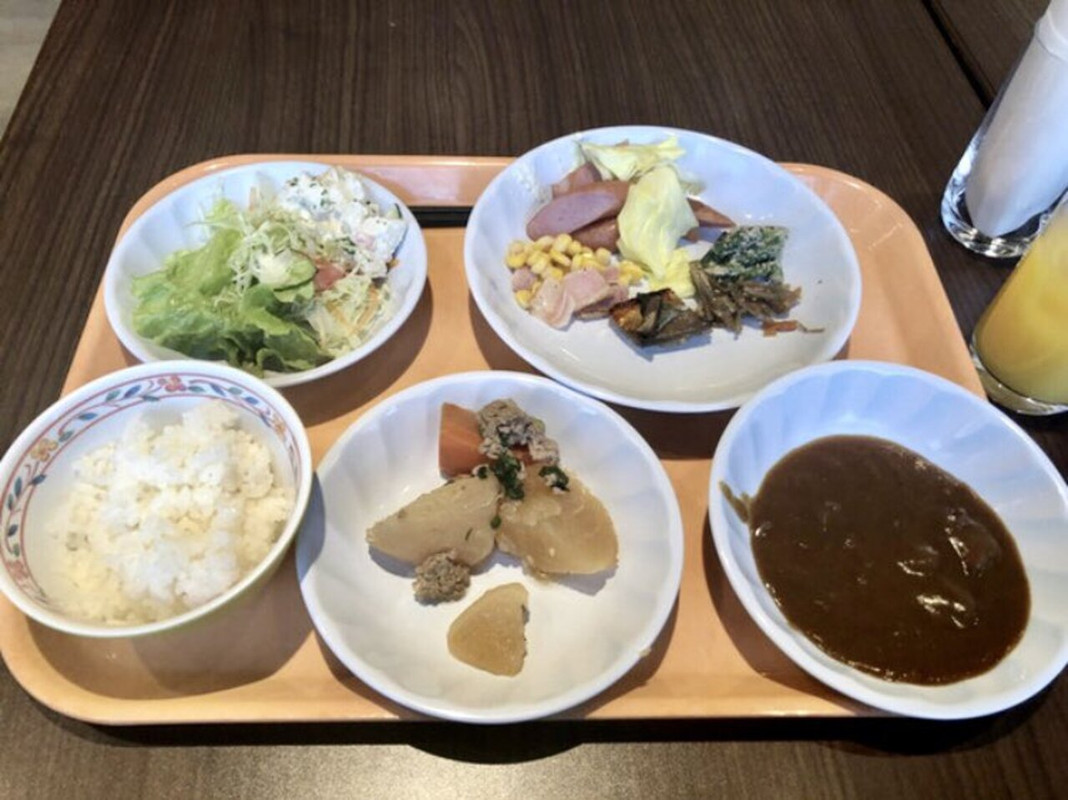 19:00にホテルにチェックインしました。着くなり、ウェルカムカレー!カレーが無料で食べられました。お腹すいていたので嬉しいサービス。朝ごはんは8:30に食べましたが、ちゃんと食材の補充がされていました。朝食会場は、とても清潔でBGMが流れ、気持ちの良い雰囲気でした。コンビニ間近で便利です。