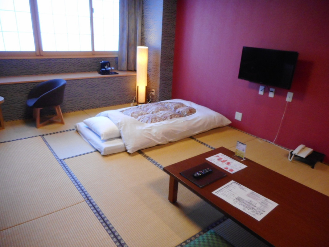 部屋のレイアウトは宿泊した事ある宿でワースト。玄関入って右がトイレ左が洗面で正面の襖を開けると直ぐ和室の畳、それらを行き来するのに玄関に降りなければならない。