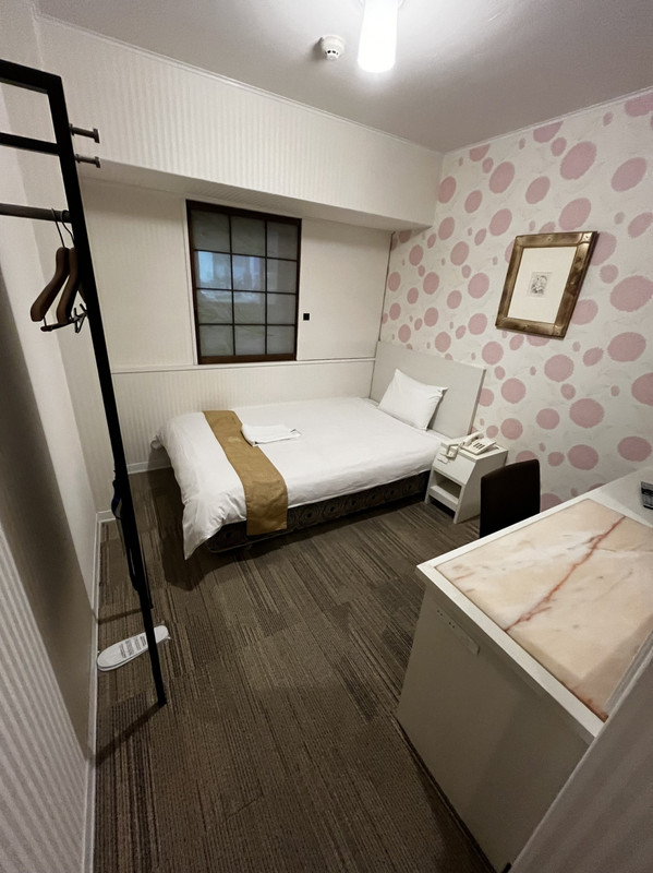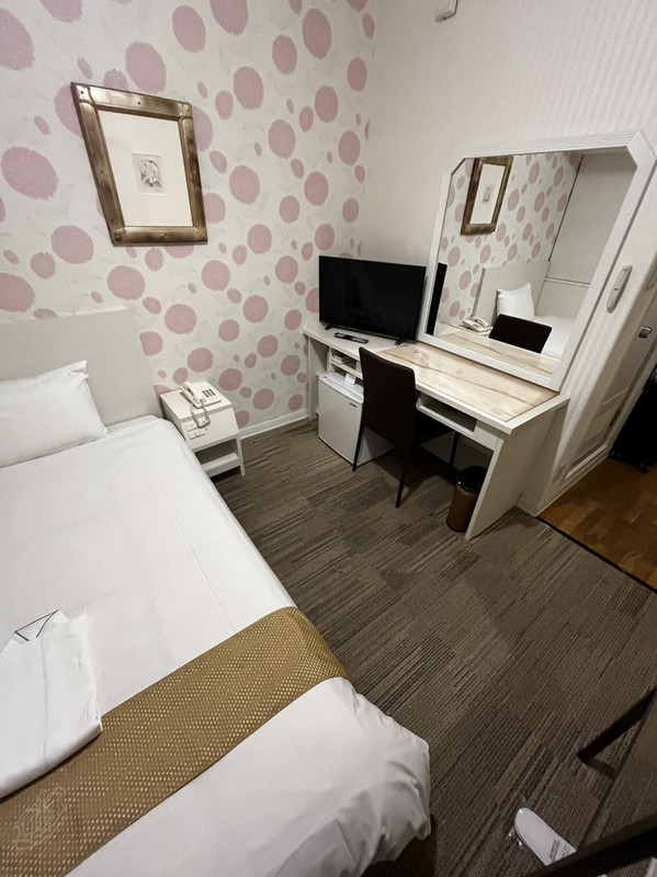 新大阪駅 特に御堂筋線の南改札からが近くてよい。小雨が降っていたのですがほとんど濡れずにチェックインできました。昭和のいい時代に作ったホテルっぽく、ビジネスホテルのようなムダを省いた造りではなく観光用の装飾にも一応 気を使った感じのホテルでした。