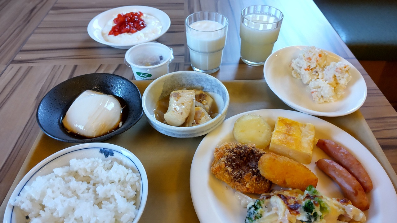朝食は無料で北海道らしいものはなかったです。1 / 4