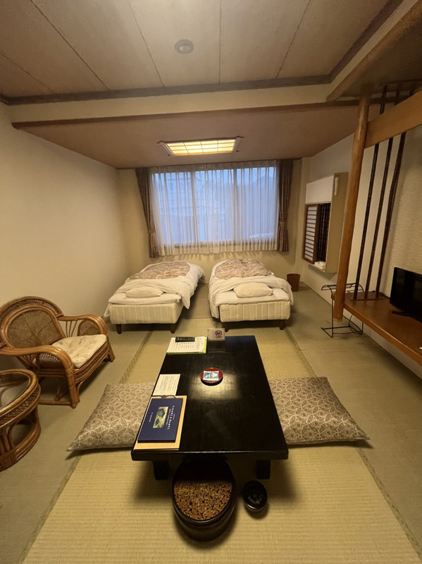 素泊まりで1泊泊まりました。源泉掛け流しという事でこちらを選びました。湯質は申し分なしですが、硫黄成分でお風呂は至る所が劣化。シャワーも硫黄で硬化。ホテルも古いですがベッドなのはありがたいです。ただエアコンはかなり効かず、全館空調の為温度下げられず、フロントに相談すると扇風機を貸し出ししか出来ず、窓を明け、扇風機でしのぎましたが暑かったです。また、朝方に着替え中にノックなしで男性従業員がドアを明け、ふすま越しになんですか?と言うと、朝食食べましたか?と。食事なしプランでなんで?と。なかなか去らないので着替え中です、ドア締めて下さいと。なんなの?と。