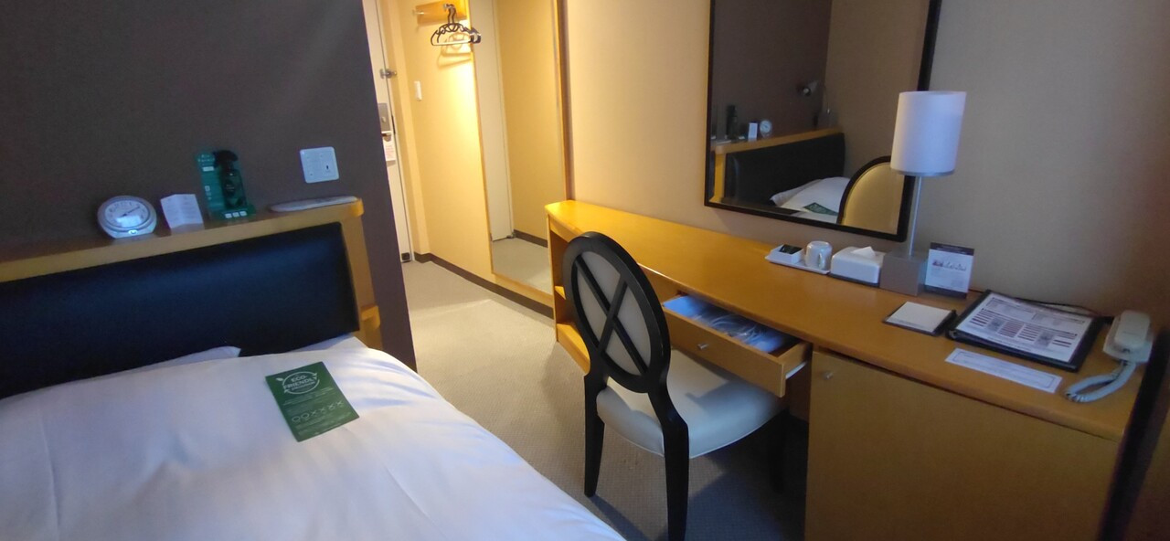 半蔵門駅4番出口から徒歩1分のダイヤモンドホテル。1階はレストラン(朝食会場)とフロント。木々に囲まれていて雰囲気がある。客室は11階まで、エレベーターは3基。窓が開かなかったのが残念。換気で送風を付けていた。椅子が沈む感じがして、デスクと高さが合っていなく腰が疲れた。内装は若干古さを感じたが、12時~翌12時まで朝食付、税込5000円は場所柄、破格。フロントの方は物静かでホテルの雰囲気と合っていた。