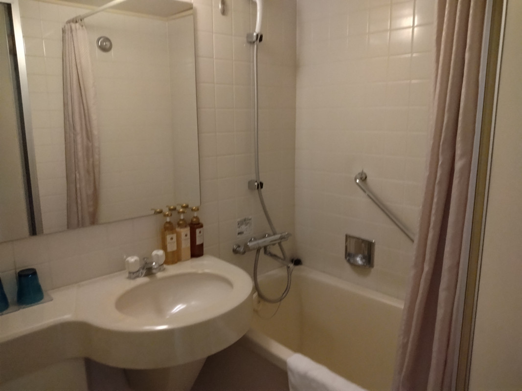 かなり古いホテルで、部屋の鍵が細長くて丸い鍵穴にさしこむタイプでした。えんじ色の遮光カーテンなど昔は高級な感じだったんだと思います。ホテルの中に結婚式場があり、どんな人が利用するんだろうと思ったら、ここは曹洞宗が経営するホテルなんですね。なるほどです。