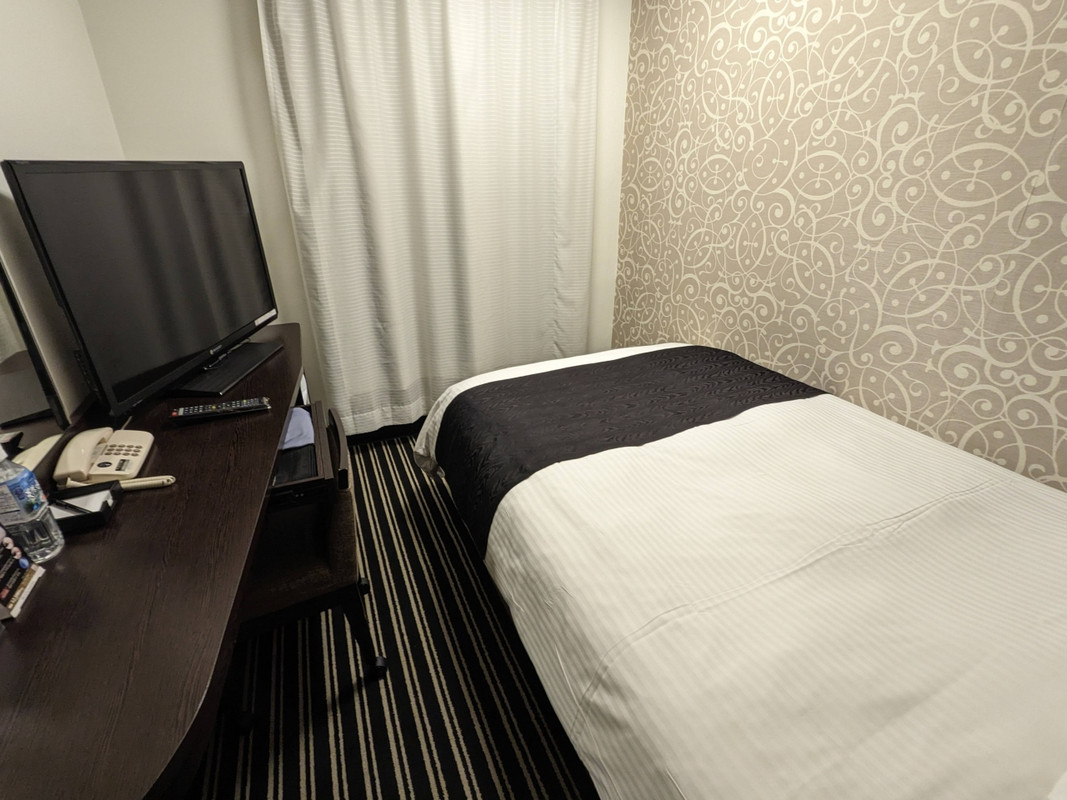 ただ、想像を上回る古さで少しびっくりしました。もちろん、ここでいう古さというのはアパの他の施設に比べたらということなので、その意味では普通の年季が入ったビジネスホテルなのですが、例えば客室の扉が木製っぽく、ドアストッパーも昔風のチェーンであるなど、アパではなかなか見ません。